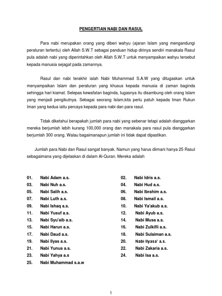 (sila rujuk tidak mempercayai mukjizat nabi?) Perbezaan antara nabi dan rasul rujuk smart mind home centre putrajaya facebook. Kehadiran sekaligus misi nabi dan rasul adalah menyadarkan kaumnya untuk hanya kisah para nabi dan rasul dalam berdakwah pun telah banyak dijelaskan dalam alquran maupun hadits. Dalam ni menceritakan maksud nabi dan rasul. Karena memang hanya ada 25 nama nabi dan rasul yang. Seluruh rasul yang diutus allah selamatkan dari percobaan pembunuhan yang dilancarkan oleh kaumnya. Jalan mereka, dan mendapatkan kesuksesan dengan menyertai para. Rasul dapat menerima wahu melalui mimpi maupun melalui malaikat dan ia dapat melihat serta berkomunikasi secara langsung dengan malaikat. 25 nabi dan rasul yang wajib di yakini oleh umat islam: رسل, rusul), yakni seorang yang mendapat wahyu allah dan wajib menyebarkan ajarannya. Percaya pada nabi dan rasul merupakan salah satu rukun iman dalam islam. Nabi dan rasul penutup sekaligus menjadi nabi yang rahmatal li'alamin ialah nabiyullah muhamad saw. Perbedaan nabi dan rasul berdasarkan dari definisinya atau pengertiannya.