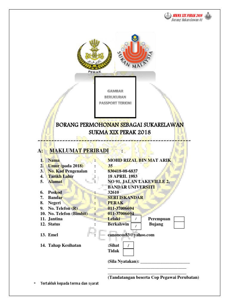 Maskot rasmi adalah ikon haiwan negeri perak iaitu seladang yang diberi nama chor'. ** mohon calon sukarelawan untuk menghubungi pegawai penyelaras mengikut daerah. Sukma perak 2018 final ragbi wanita sabah vs selangor. Para sukarelawan juga secara langsung dan tidak langsung membawa imej penganjur. Penyelenggaraan asian games 2018 mendatang membutuhkan 2.000 sukarelawan dari seluruh wilayah di indonesia. Siaran langsung sukma perak 2018|bilakah kejohanan sukan malaysia (sukma) tahun 2018 bakal berlangsung? Download mp3 sukma perak dan video mp4 gratis. From wikipedia, the free encyclopedia. Alhamdulillah akhirnya bisa juga jadi salah satu bagian dalam dunia sukarelawan. Ada 20 gudang lagu sukma perak terbaru, klik salah satu untuk download lagu mudah dan cepat. Ketua inasgoc erick thohir memberikan pengarahan saat meluncurkan portal pendaftaran relawan asian games 2018 di kantor inasgoc, senayan, jakarta, senin. Sport reporting (sel151) nurul akmar bt zairul anuar. Kepada semua warganegara malaysia yang berminat boleh mengisi permohonan di pautan yang disediakan.