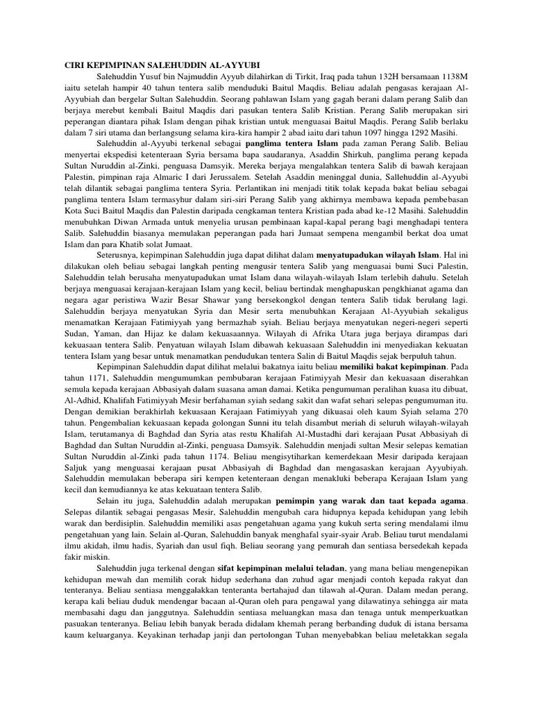 Al Ayubi Sejarah Stpm P2 from imgv2-2-f.scribdassets.com Ia baru saja memenangkan pertempuran di bukit hittin, galilee bukan sutra yang halus lembut dan gemerlap. Nazeer ahmed, phd a divided islamic world offered feeble resistance to the crusaders who consolidated their hold on the eastern mediterranean and imposed their fiefdoms on the region. Salahuddin (saladin) and the battle of hittin contributed by prof. Bapa saudaranya, asadudin merupakan panglima perang. Bahkan ketika rakyat membuka peti hartanya ternyata hartanya tak cukup untuk biaya pemakamannya, hartanya banyak. Kemudian salahuddin melanjutkan pendidikannya ke damaskus selama 10 tahun di dalam. Di barat beliau dikenali sebagai saladin. Ayahnya najmuddin ayyub dan pamannya asaduddin syirkuh hijrah (migrasi) meninggalkan kampung halamannya dekat danau fan dan pindah ke daerah tikrit (iraq).
